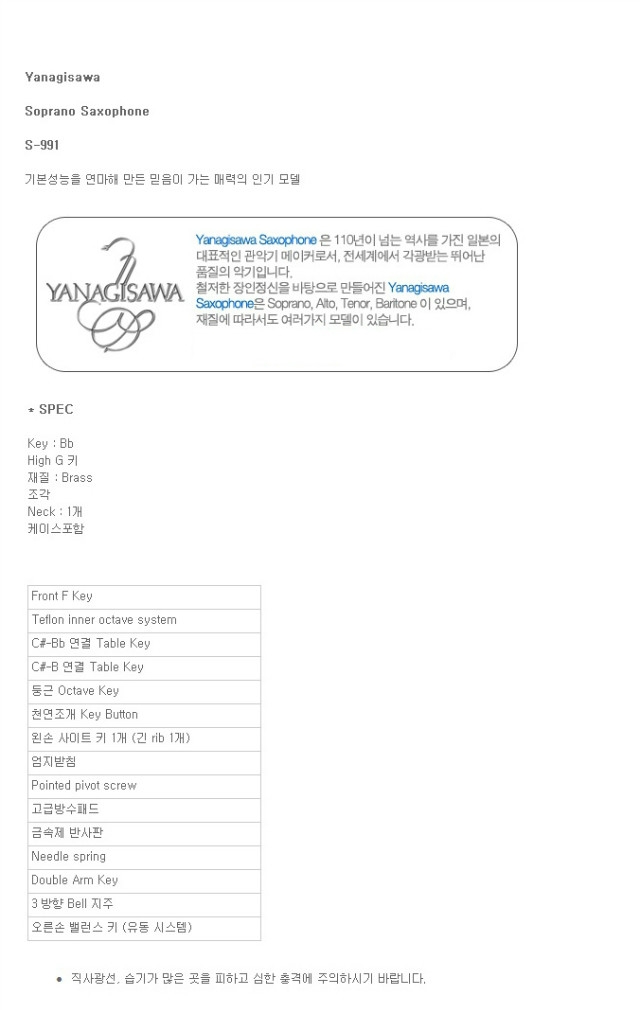 [일본정품] 야나기사와 직관 소프라노 색소폰 S-991 [W0 10]