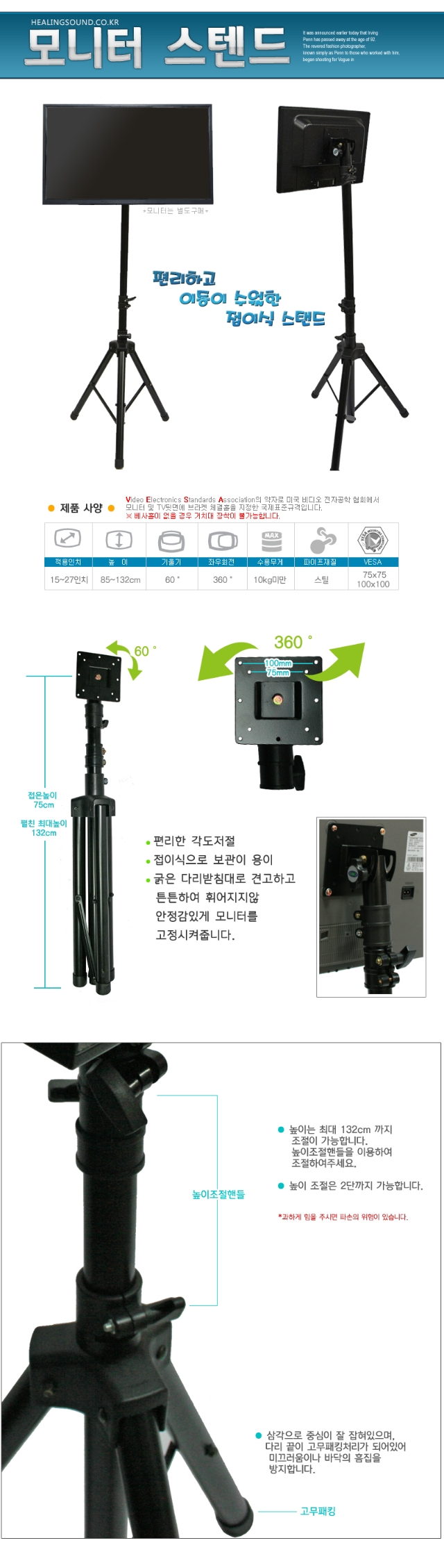 모니터 스탠드 + 브라켓(100*100) [모니터 별도]