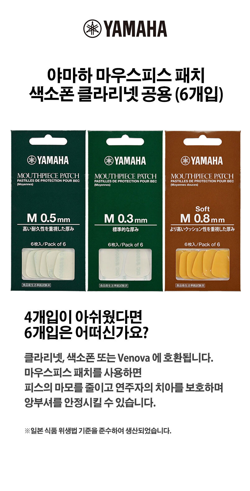 [패치] 야마하 마우스피스 패치 6개입 색소폰 클라리넷 공용