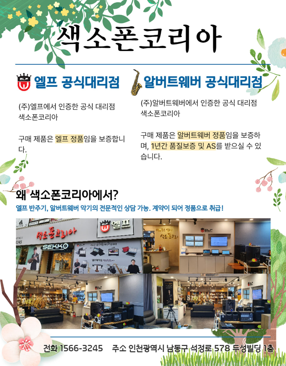 - [21618] 인천광역시 남동구 서창남로 16-30 OK빌딩 4층 색소폰코리아
